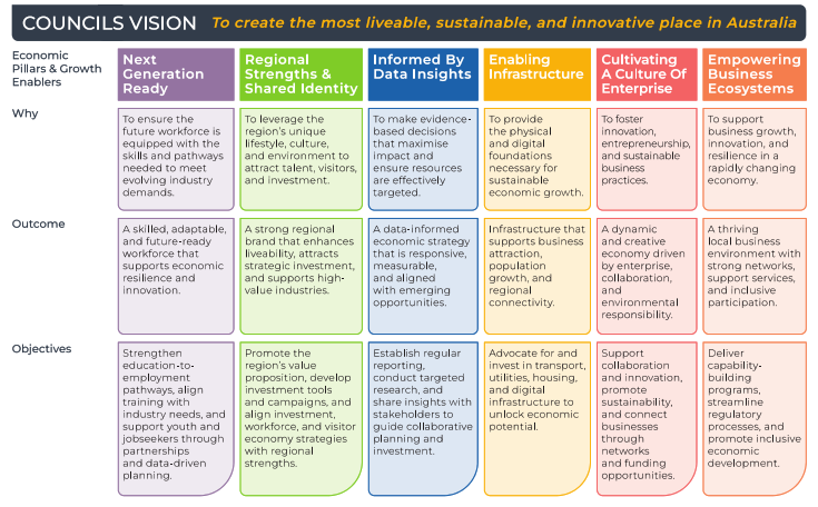 The strategy responds to the challenges of: a rapidly growing and ageing population; significant workforce pressures; housing and infrastructure demands and; reliance on population-serving sectors. It also highlights opportunities to: strengthen high-value and export-oriented industries; improve workforce readiness and; reduce economic leakage through local supply chain development.