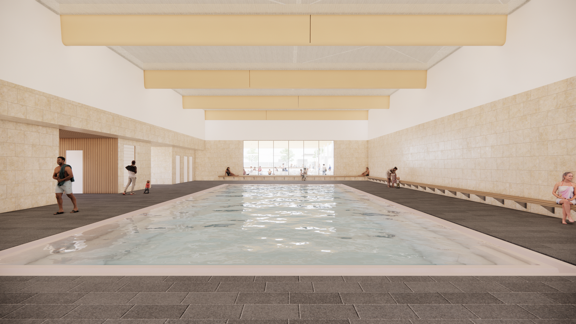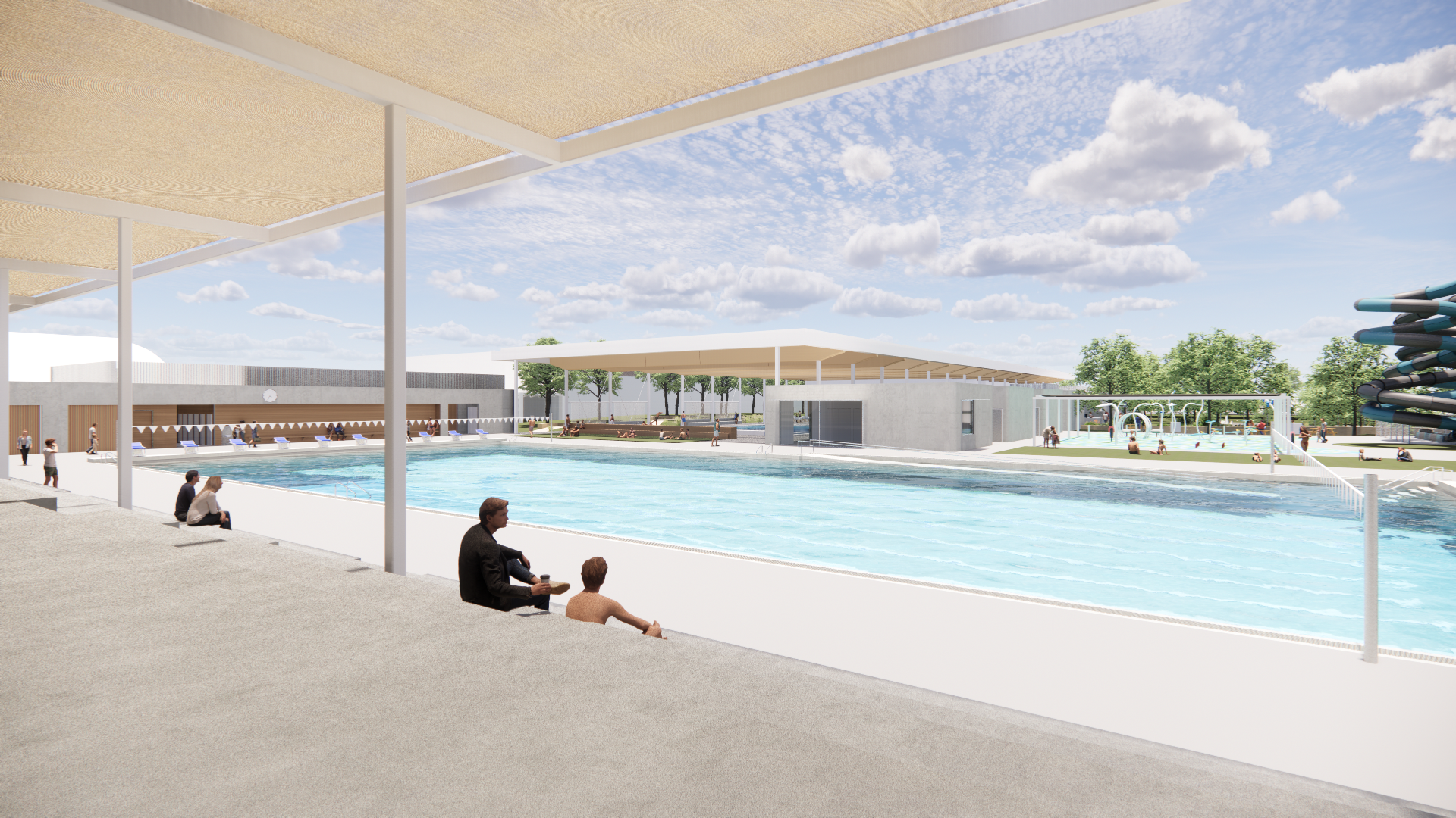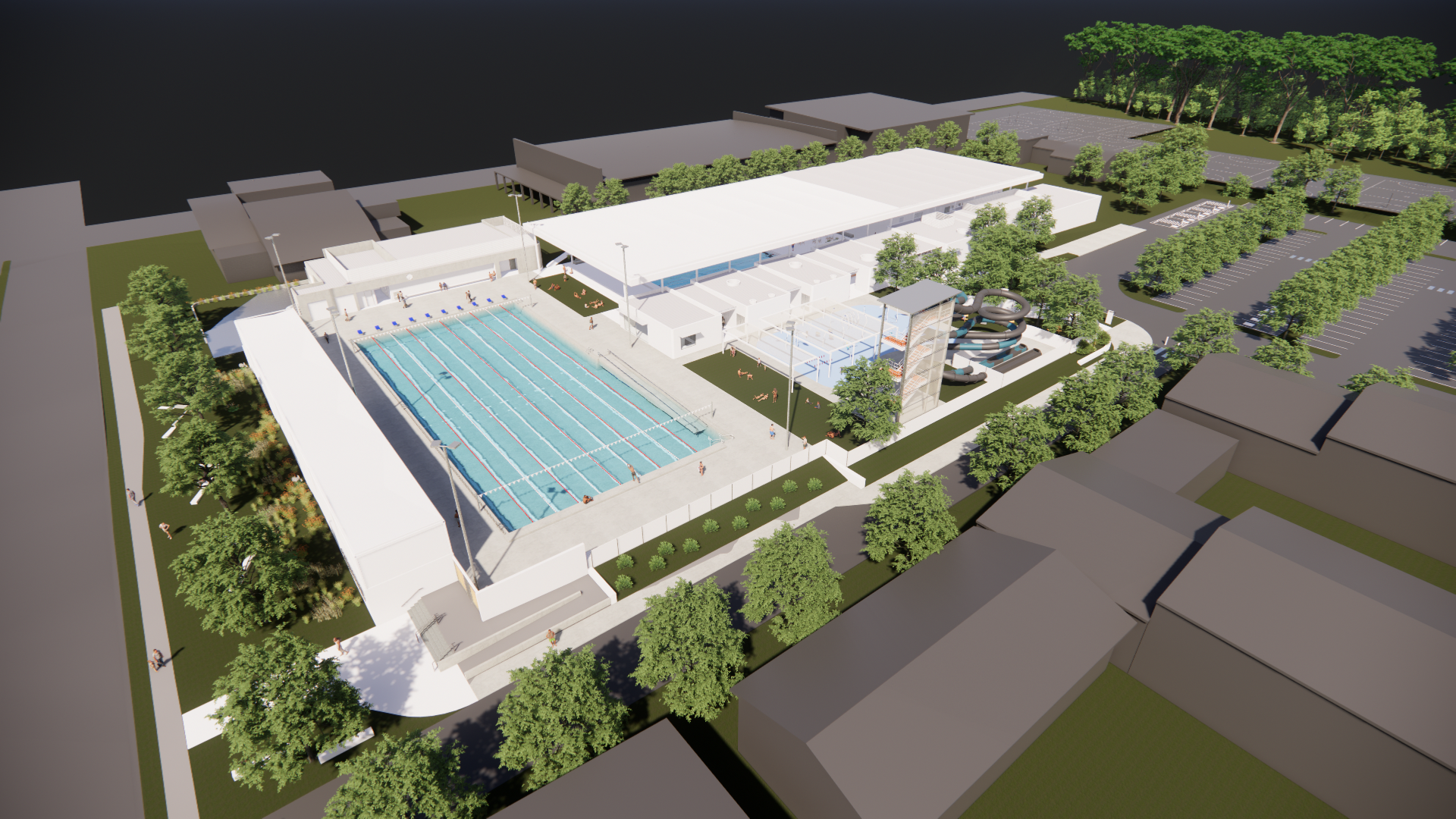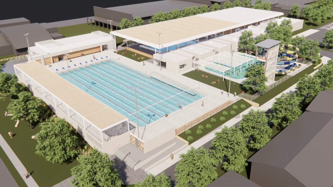 Key features of the design include: 50-metre outdoor pool; 25-metre pool with transparent roof; 20-metre indoor pool; gym; amenities; kiosk, splash pad and slide, and 170 parking spaces. View the concept renders.